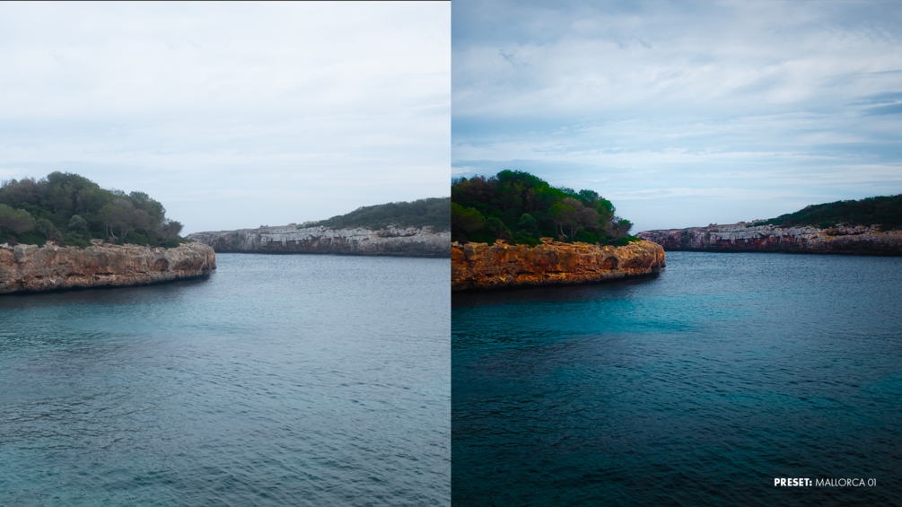 5 Lightroom presets inspired by the mediterranean coastline of Mallorca handcrafted by German photo-& videographer Nico Campanella, widely known for his work with various artists, musicians and companies such as ECHO and Universal Music.